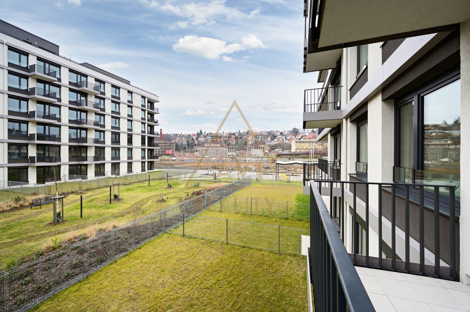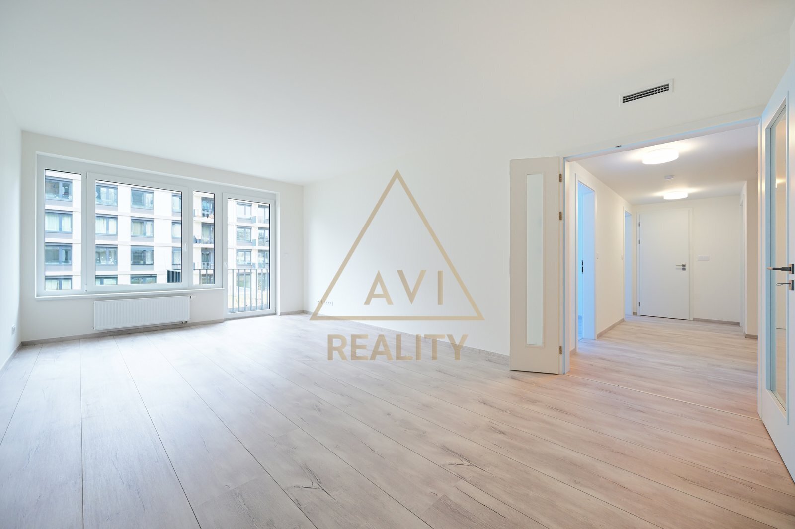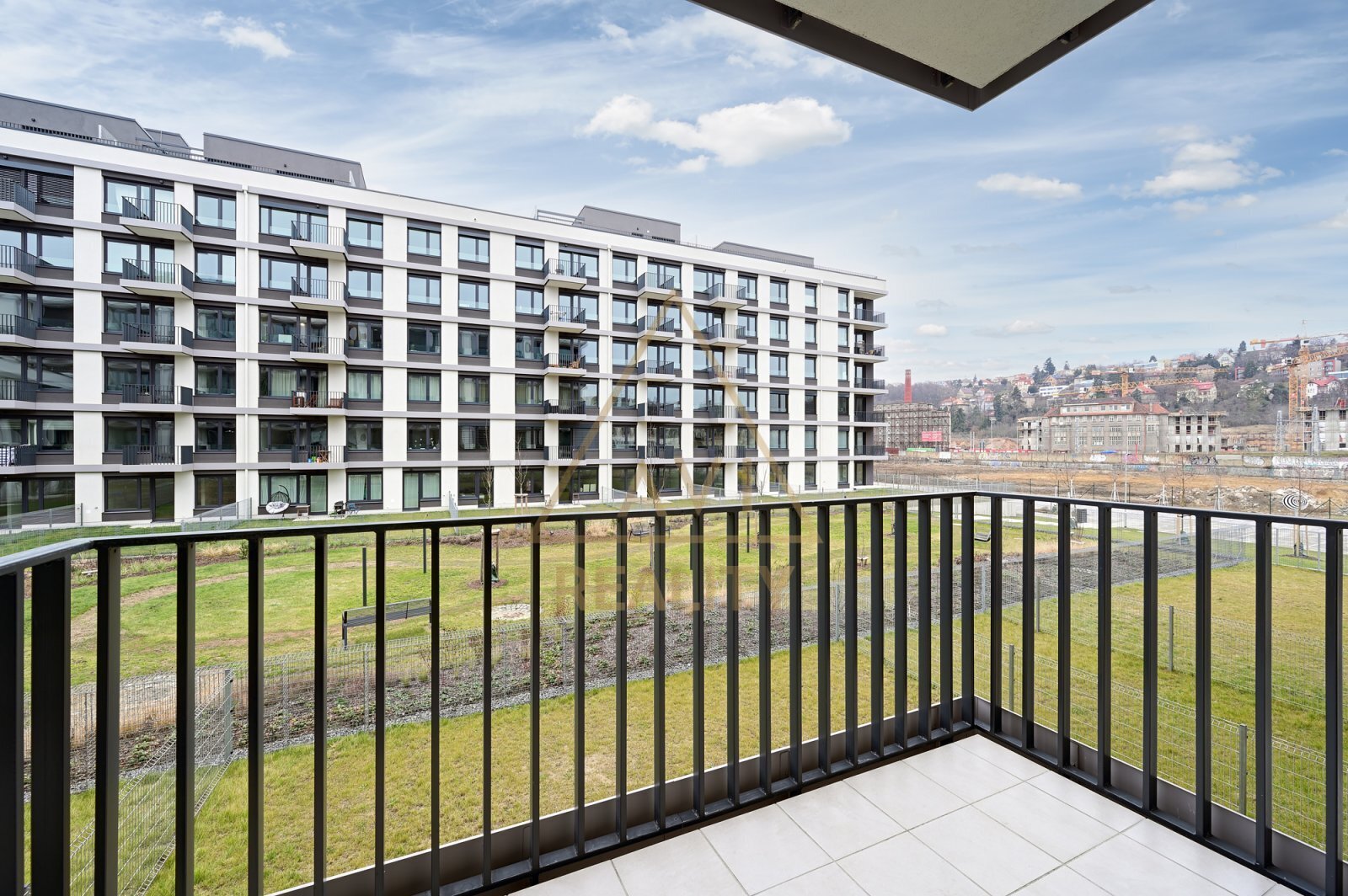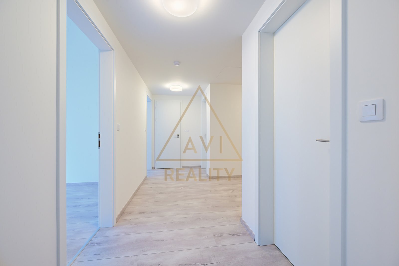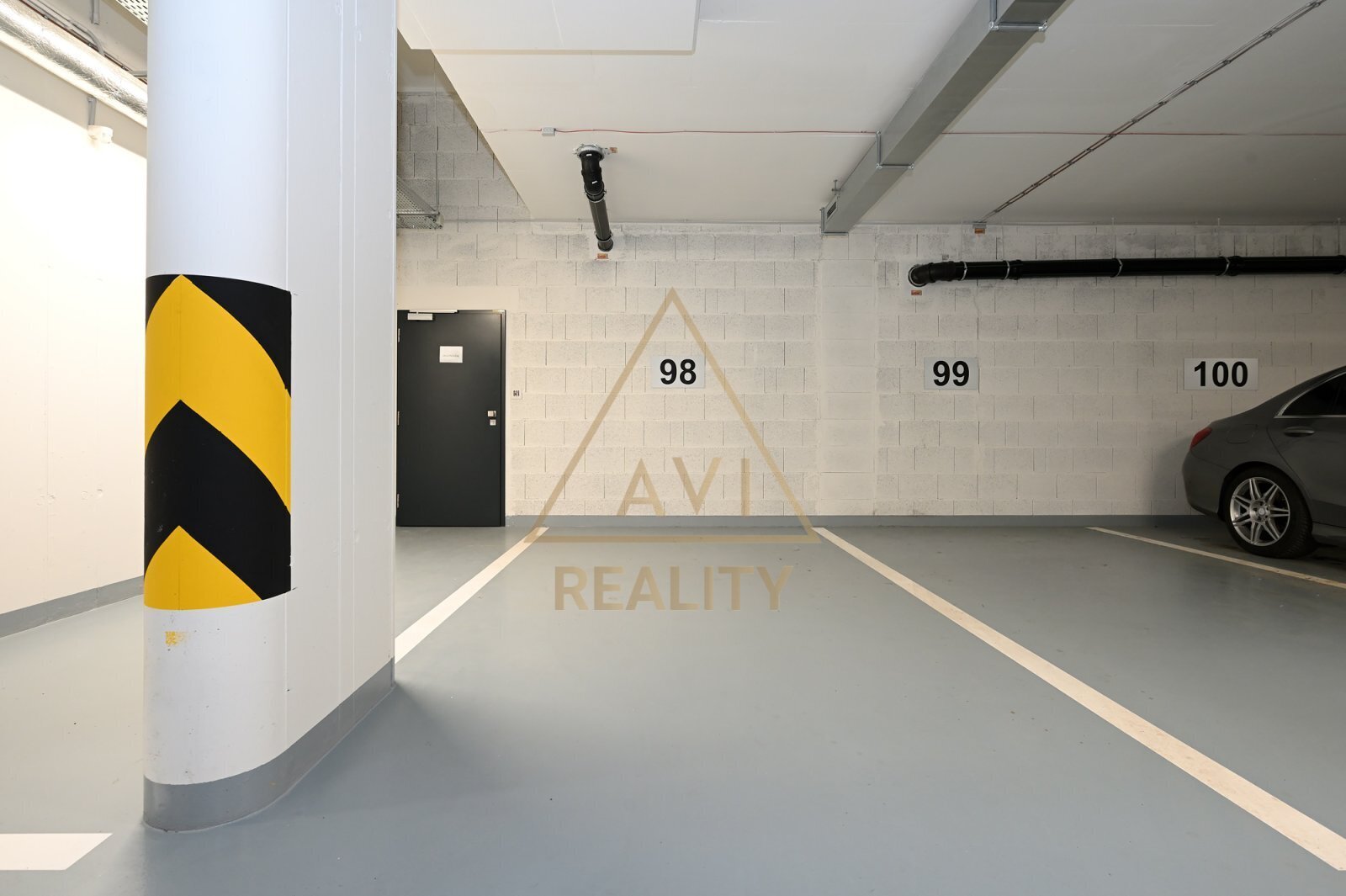Velkou předností tohoto bytu je, že obě parkovací stání jsou v bezprostřední blízkosti výtahu a jsou umístěny tak, že nabízí bezproblémové vystoupení z vozu a jsou zároveň v těsné blízkosti sklepní kóje o rozloze 2,60m2. Tato moderní nemovitost s energetickým štítkem A se nachází ve 2. patře 7-podlažní budovy a nabízí velkorysou plochu o rozloze 99 m2. Byt je nevybavený, avšak s bezbariérovým přístupem a balkónem o velikosti 4,10 m2. Na podlahách je kvalitní plovoucí podlaha a dlažba. Rozměry jednotlivých místností - chodba 14,27 m2, koupelna 4,99 m2, obývací pokoj + kk 36,89 m2, ložnice 16,36 m2, pokoj 13,30 m2, WC 2,40 m2 a komora 3,54 m2. Zálohy na poplatky za služby činí 5 300 Kč měsíčně.