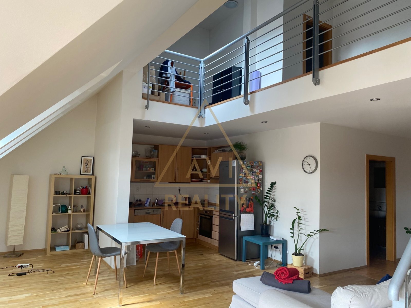 Nabízíme k pronájmu krásný, světlý a prostorný mezonetový byt 3+kk o celkové ploše 135 m² včetně terasy, situovaný v 5. patře cihlového domu s výtahem. Byt se nachází ve velmi žádané lokalitě Vršovic, s výhledem do parku Grébovka.