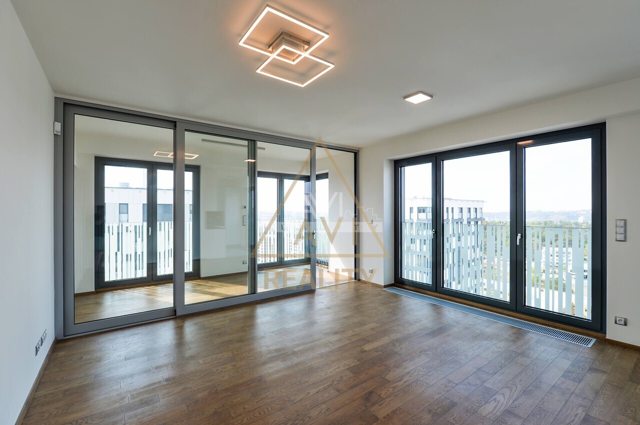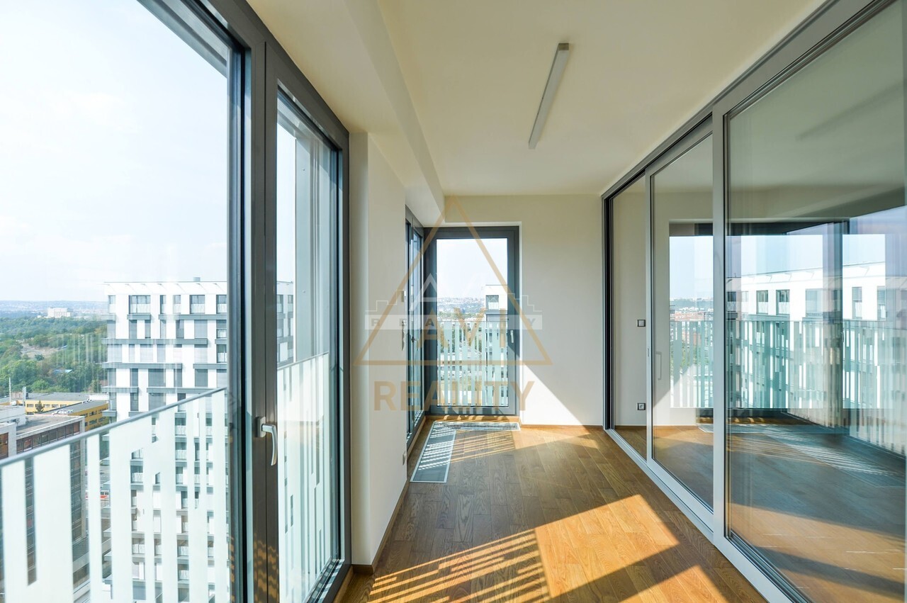 Žižkov Olšanská novostavba Plně klimatizovaný byt se zimní zahradou a krásným panoramatickým výhledem na město, do okolní zeleně a na Pražský hrad, situovaný v nejvyšším, 18. podlaží moderního rezidenčního projektu Garden Towers s recepcí, upraveným atriem a podzemním parkováním. Projekt se nachází v blízkosti parku Parukářka, v příjemné lokalitě v Praze 3 s plnou občanskou vybaveností v blízkém dosahu (nákupní centrum Flora, Olšanská poliklinika, pošta, četné možnosti sportovního vyžití) a dobrou dopravní dostupností do centra díky četným tramvajovým spojům a nedalekým stanicím metra Želivského a Flora.Interiér bytu tvoří obývací pokoj s plně vybavenou kuchyní, jídelnou a vstupem do zimní zahrady (6 m2), 1 ložnice, koupelna (vana se sprchovou zástěnou, toaleta), vybavená šatna a vstupní hala s vestavěnou skříní. Nájemci mohou užívat také velkou společnou terasu v 5. patře budovy. Kvalitní materiály a provedení, dřevěné podlahy, dlažba, bezpečnostní vstupní dveře, francouzská okna, elektricky ovládané předokenní žaluzie, centrální vytápění, myčka, indukční varná deska, mikrovlnná trouba, videotelefon, alarm, sklep o 5,3 m2, vstup do budovy na čip. Cena zahrnuje užívání jednoho garážového stání v podzemních garážích a samostatný zděnný sklad. Zálohy na poplatky 5.000 Kč, hradí se pouze měřitelná média. Kauce pro majitele bytu 2x měsíční nájem. Provize RK 31.500 Kč + DPH 21%. Prohlídky možné kdykoliv po dohodě. Volné od 1.11.2024